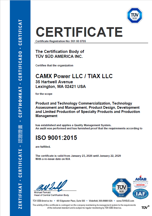 TIAX maintains a Quality Management System in accordance with ISO 9001:2015.